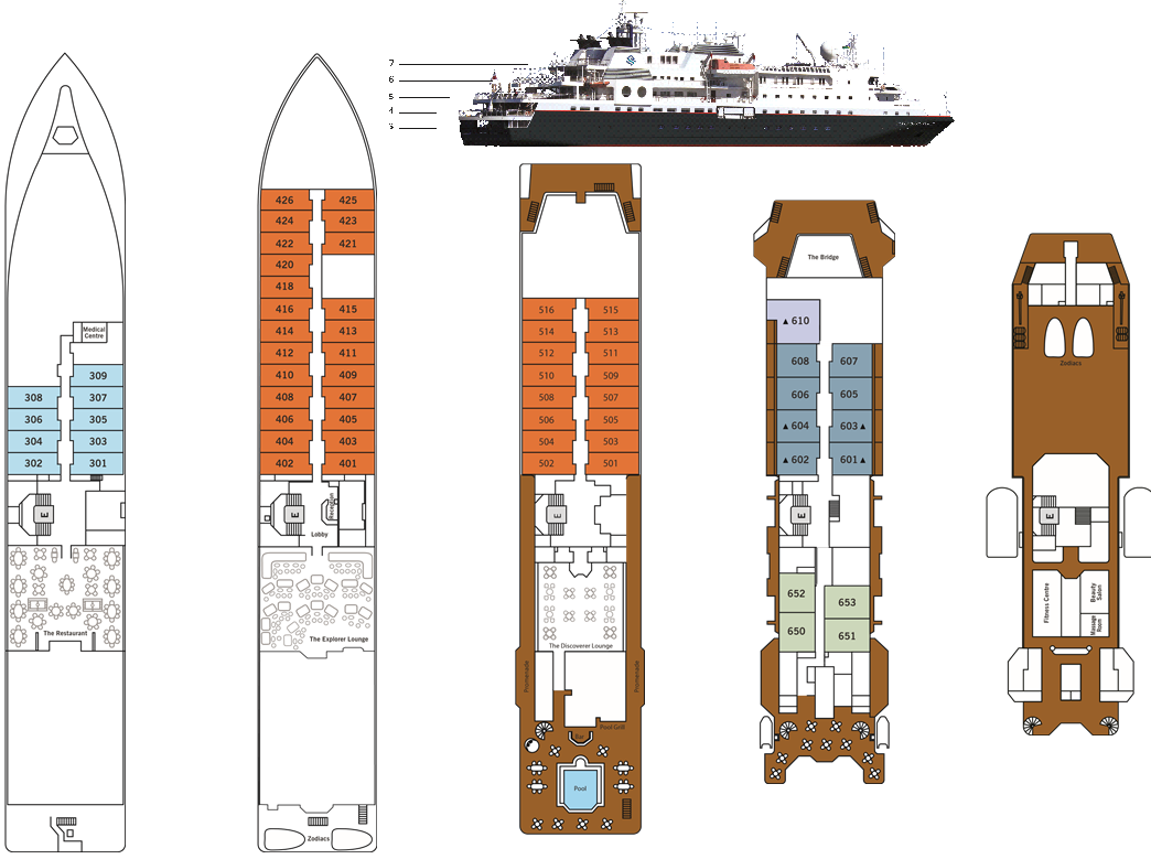 The Silversea Discoverer explores the remote archipelagos of the vast Pacific and is a perfect platform for discovering untamed landscapes with her shallow draft that allows her to navigate close to shore and all ocean-view suites and a large amount of deck space means dolphins and whales are always within sight! Guests can land on isolated shores and explore wetlands and submerged ecosystems, up-close and in-depth.