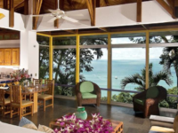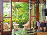 Makanda by the Sea is located 1 km from the main road between Quepos and Manuel Antonio National Park. It’s rooms are very private and individually designed. It has a magnificent infinity swimming pool and a path leading down through the jungle to a secluded beach. There are only 9 rooms which are hidden in the natural jungle and Japanese gardens, this is an ideal place for honeymooners. Breakfast is delivered outside your door in a cool box, inside is fresh fruit, fruit juice, bread, muffins, fresh coffee beans, jam, butter etc.. In your room there is a small kitchen area with a toaster, coffee maker, fridge etc. and you eat at leisure. Dining options include; Sunspot Bar & Grill and Arbol Restaurant.