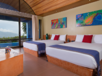 The Xandari Plantation & Spa Hotel is a small exclusive hotel set in a tropical paradise with panoramic views of the central valley. he Xandari is situtated on the Tacacori e Alajuela, which is the perfect setting overlooking Costa Rica’s majestic Central Valley – 1200 meters above sea level and is one of the most scenic coffee regions in Costa Rica. The Xandari is just 20 minutes from Juan Santamaria International Aiport but is a world away. The hotel has 24 villas scattered among coffee plantations and exotic gardens. Each room has its own terrace; rooms are large and carefully decorated to give them originality. The hotel also has 2 swimming pools, Jacuzzi & wonderful spa area with each hut having a Jacuzzi with spectacular views of the valley. The spa also has a special yoga room and weights, which can be taken to guest’s rooms.
